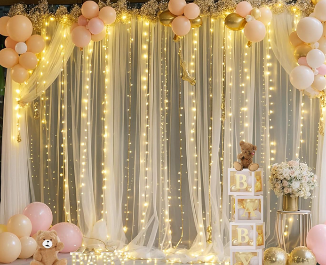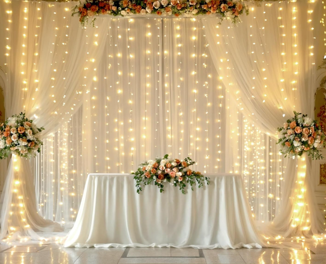 Transparenter Vorhang mit Lichterketten